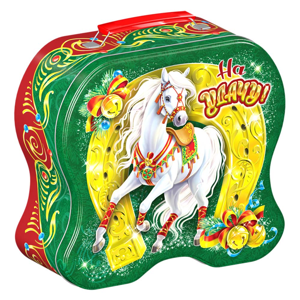Сладкий подарок в жестяной упаковке Подкова 800г Премиум.